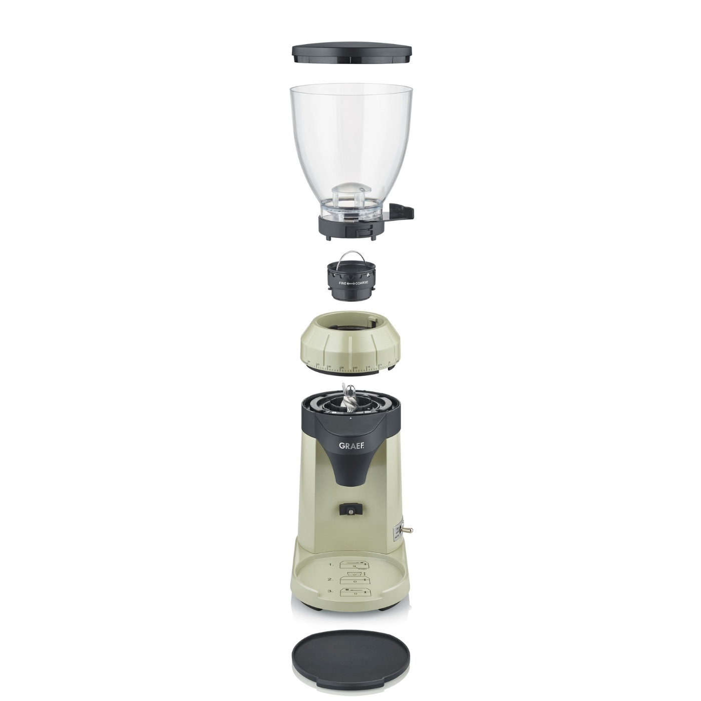 Einfache, sichere und saubere Handhabung Einstellbare Kaffeemenge für 2 bis 12 Tassen Herausnehmbares oberes Mahlwerk Herausnehmbares oberes Mahlwerk zur leichten Reinigung Individuelle Mahlgradeinstellung Tassengenaue Direktmahlung in den Kaffeemehlbehälter |