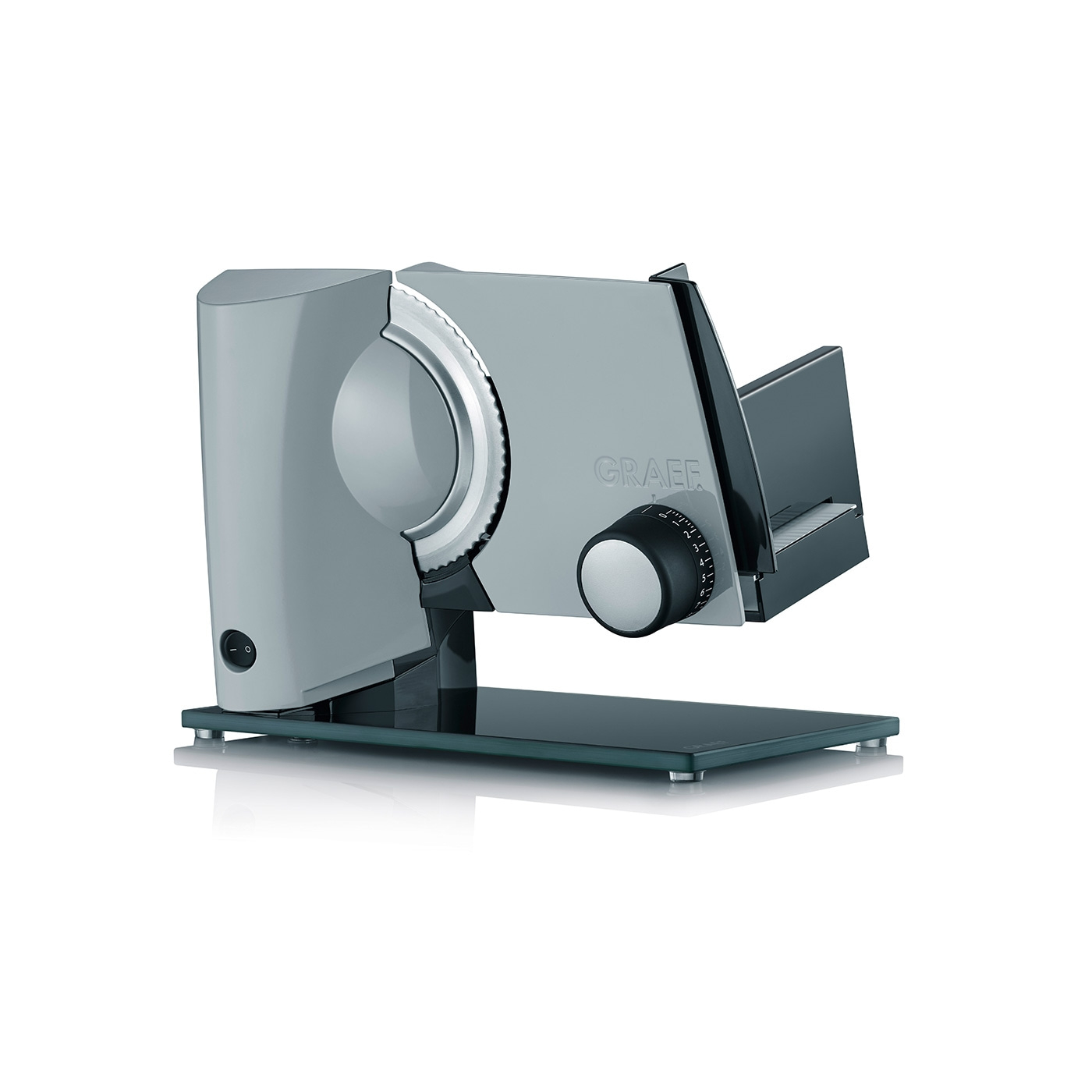 Der Vollmetall-Allesschneider MultiCut Plus ist in den fünf modernen Farben Weiß, Schwarz, Rot, Grau und Pastelltürkis erhältlich und zeichnet sich durch typische Graef-Tugenden aus: Funktionalität und durchdachtes Design, verbunden mit einfachster Handhabung und Sicherheit. Die freitragende Maschine schwebt über einer bruchsicheren und hygienischen Glasbodenplatte, die das Schneidgut auffängt. Die um 15 Grad schräg gestellte Arbeitsfläche sorgt zusätzlich für eine noch leichtere Bedienung und exzellente Schneidergebnisse. Ihr energiesparender 45 Watt-Motor Eco Power Motion arbeitet in der Spitze mit bis zu 170 Watt Leistung und ist dabei noch immer leise. Er treibt das rotierende, 170 mm breite Edelstahlmesser an, das sich dank Wellenverzahnung für Lebensmittel aller Art eignet. Die Schnittstärke lässt sich von hauchfein auf bis zu 2 cm vergrößern. In Kombination mit dem beiliegenden Kombi-Aufsatz wird der MultiCut Plus zum unverzichtbaren Helfer in jeder Küche: Der patentierte Allesschneider-Aufsatz sorgt für gesunde Frische, ein schnelles, sicheres Arbeiten ohne Reste und ist besonders geeignet für frische, kleine Zutaten wie Radieschen. Sogar kleine Kartoffeln oder Pilze können mit hoher Geschwindigkeit und ohne Verletzungsgefahr in hauchdünne, ovale Scheibe geschnitten werden. Das sorgt nicht nur für ein intensiveres Aroma, sondern verkürzt auch die Garzeit beim Kochen. Der leicht laufende Schlitten des MultiCut Plus verfügt über eine große, hygienische Auflage, auf der Schneidgut wie Fleisch, Wurst, Käse oder Gemüse exakt an das Messer geführt werden kann. Selbst großes Schneidgut wie z.B. Brot oder Schinken lässt sich sicher und ohne weiteren Aufwand auf dem Schlitten verarbeiten. Dank Safety-Verschluss lässt sich das Messer zum Reinigen schnell und sicher abnehmen. Nachwuchsköche werden durch die Kindersicherung „Clip“ geschützt, die den Schlitten verriegelt und damit das Messer vollständig abdeckt.