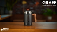 The design of the GRAEF French press pot is as stylish as it is functional. A sophisticated selection of materials, including glass, matt black lacquered metal and acacia wood, rounds off the timeless design.